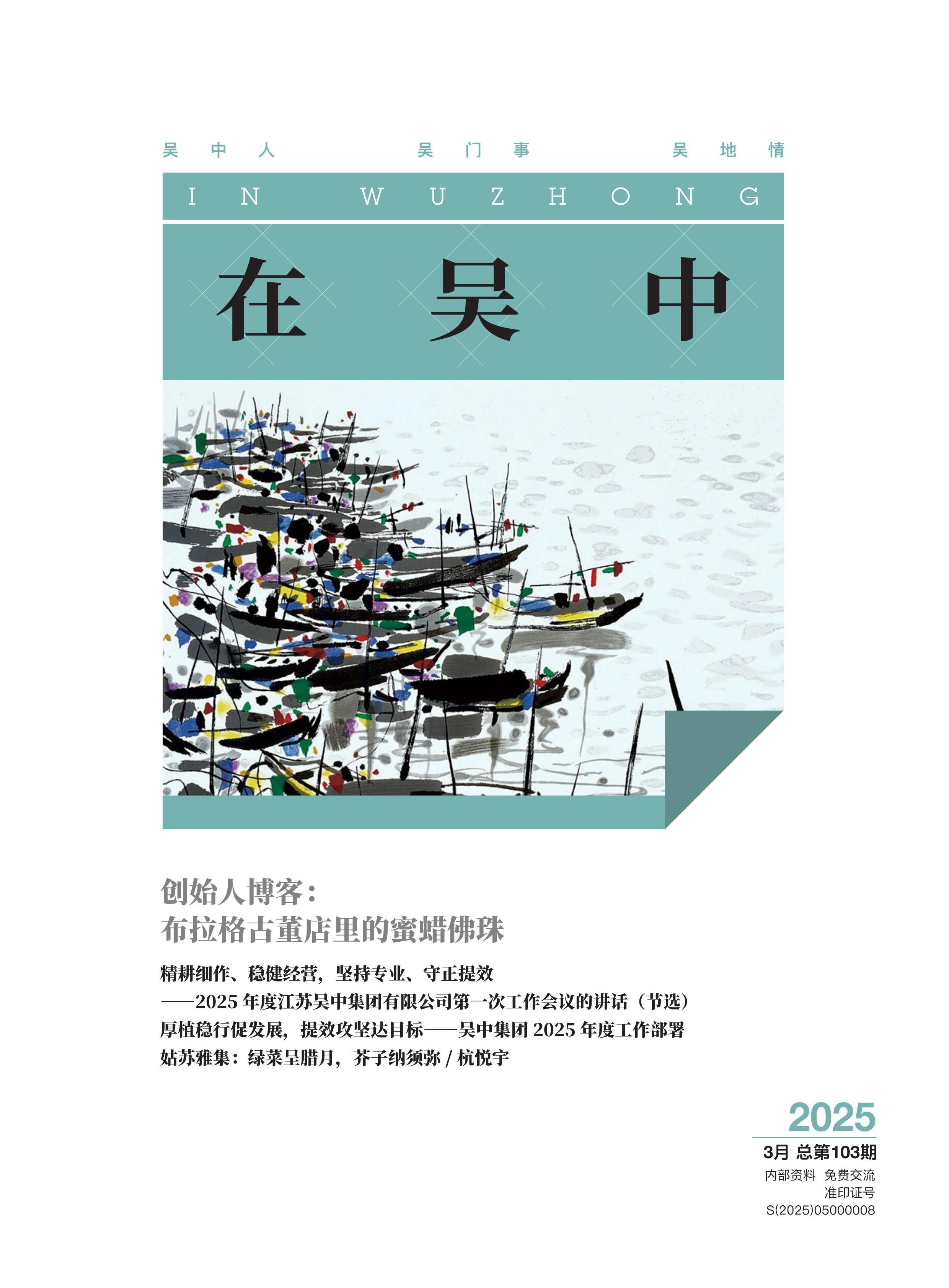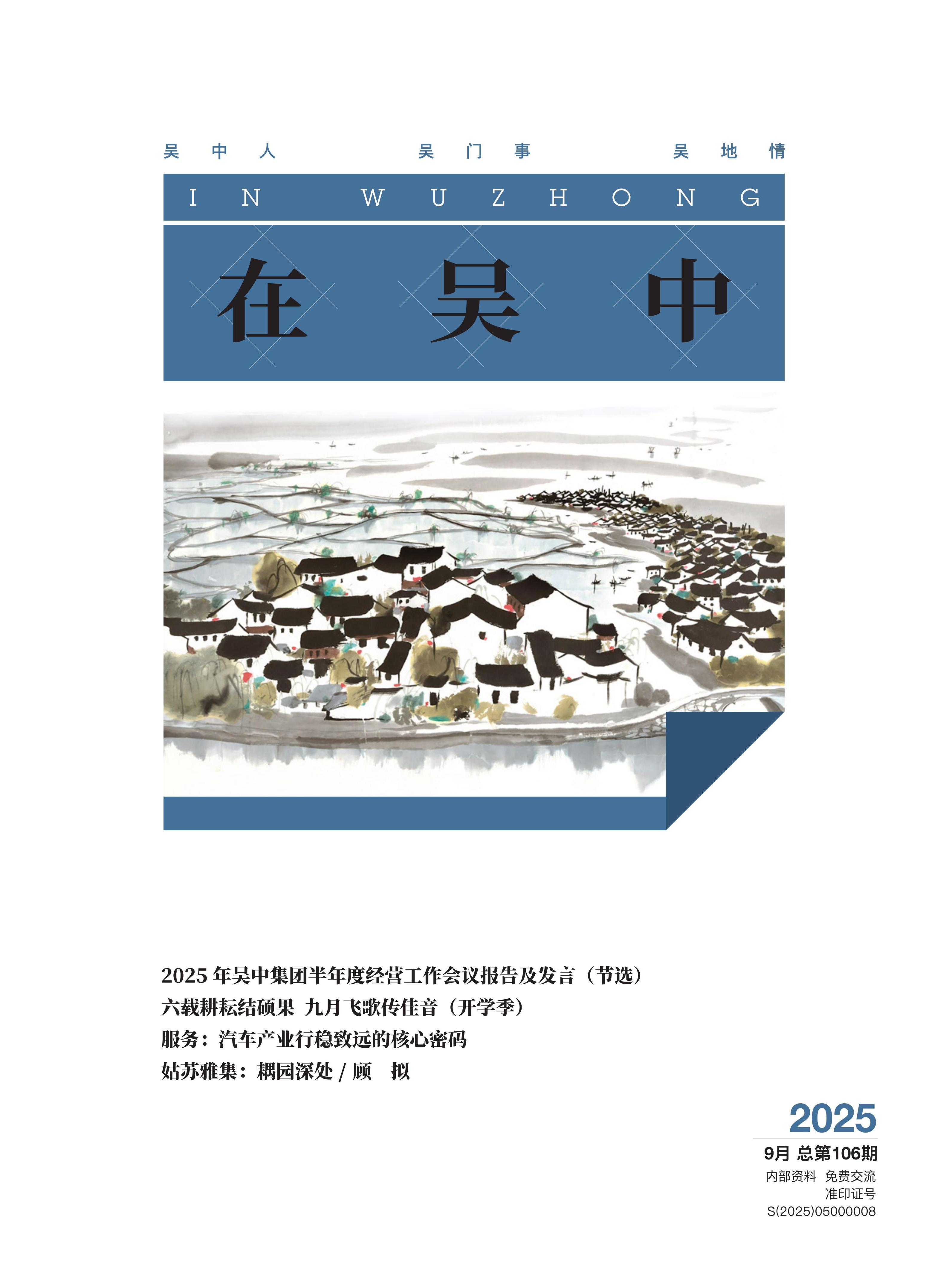 《在吳中》創(chuàng)刊于2005年,蘇州市十佳內(nèi)刊。以述吳中人、記吳中事、傳吳中情為宗旨,堅持記錄吳中集團的發(fā)展,為品牌建設(shè)發(fā)展助力?!对趨侵小穯纹谟∷?500冊,主要用以企業(yè)內(nèi)部交流,其意在傳達(dá)的吳中集團的力量、文化和精神。每期《在吳中》都記載著吳中人工作、學(xué)習(xí)、生活的實時動態(tài),所見所聞、所思所想、所作所為,總結(jié)借鑒企業(yè)經(jīng)營管理之道,汲取吳地人文精髓,廣受社會各界的好評和認(rèn)可。