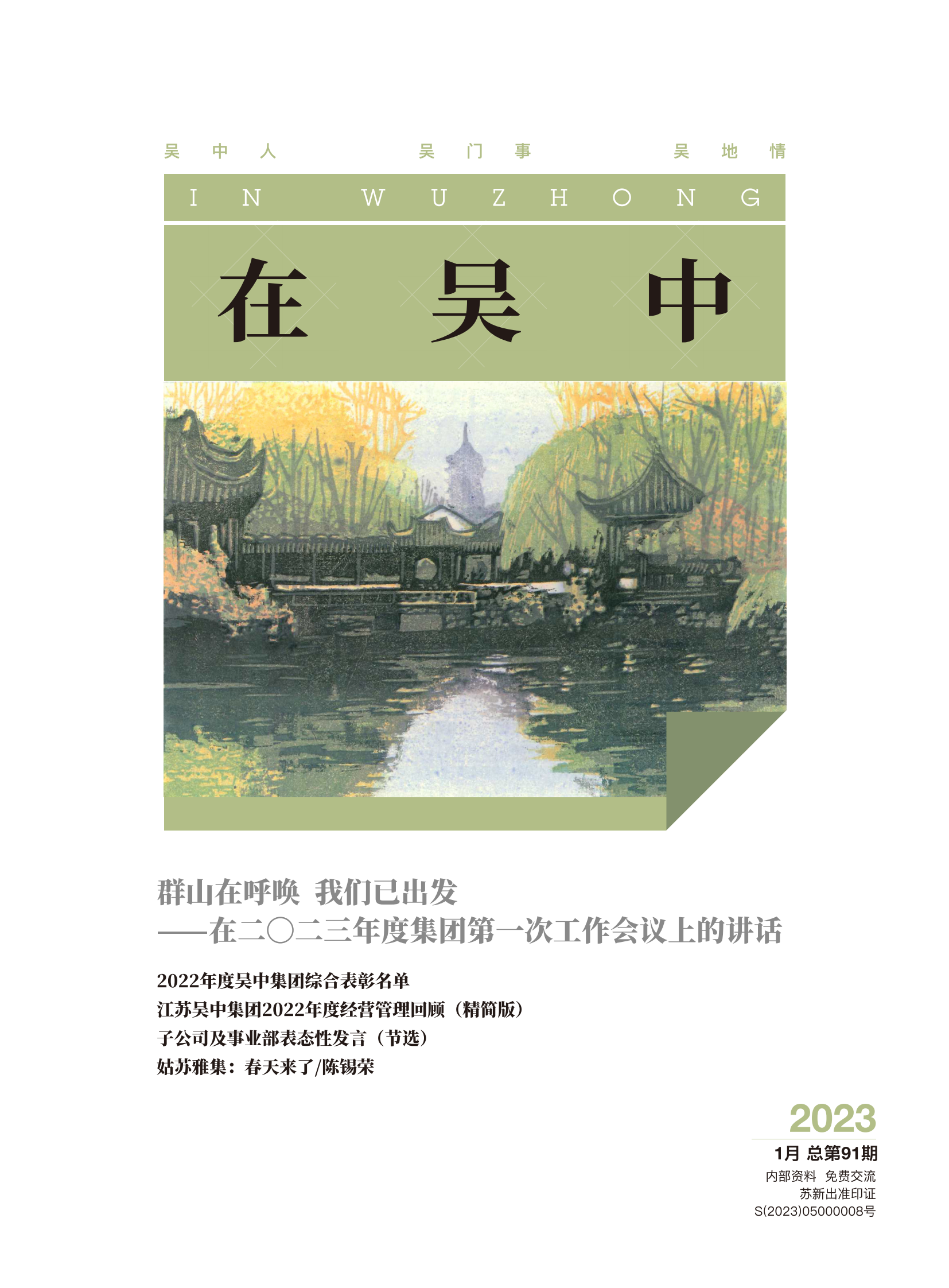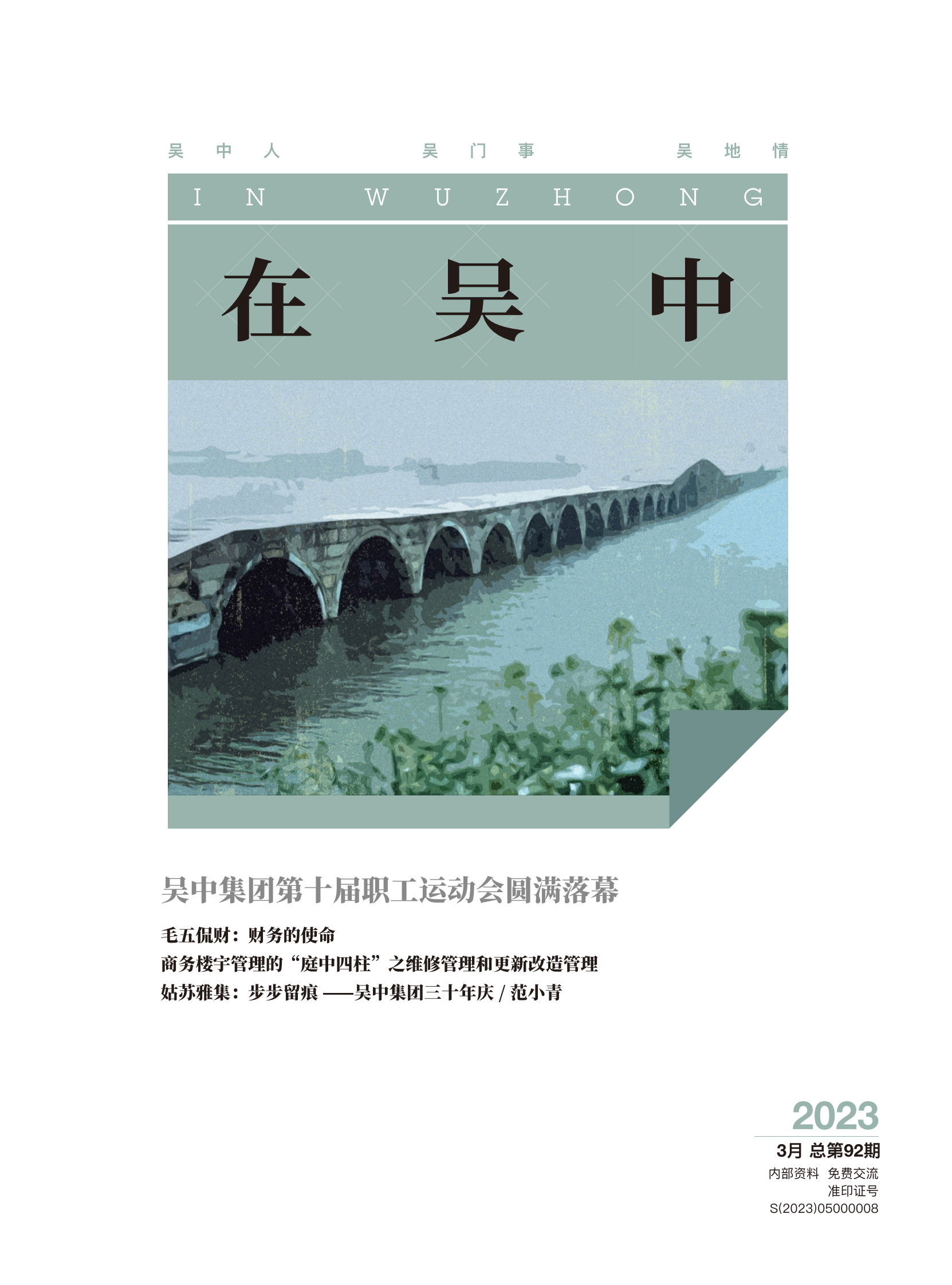 《在吳中》創(chuàng)刊于2005年,蘇州市十佳內(nèi)刊。以述吳中人、記吳中事、傳吳中情為宗旨,堅(jiān)持記錄吳中集團(tuán)的發(fā)展,為品牌建設(shè)發(fā)展助力。《在吳中》單期印刷1500冊,主要用以企業(yè)內(nèi)部交流,其意在傳達(dá)的吳中集團(tuán)的力量、文化和精神。每期《在吳中》都記載著吳中人工作、學(xué)習(xí)、生活的實(shí)時(shí)動態(tài),所見所聞、所思所想、所作所為,總結(jié)借鑒企業(yè)經(jīng)營管理之道,汲取吳地人文精髓,廣受社會各界的好評和認(rèn)可。